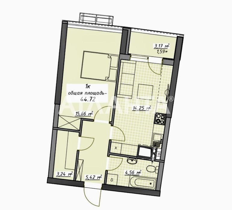 1-room apartment apartment by the address st. Kulikovo pole pl Oktyabrskoy revolyutsii pl (area 45 m²) - Atlanta.ua - imageAlt 3