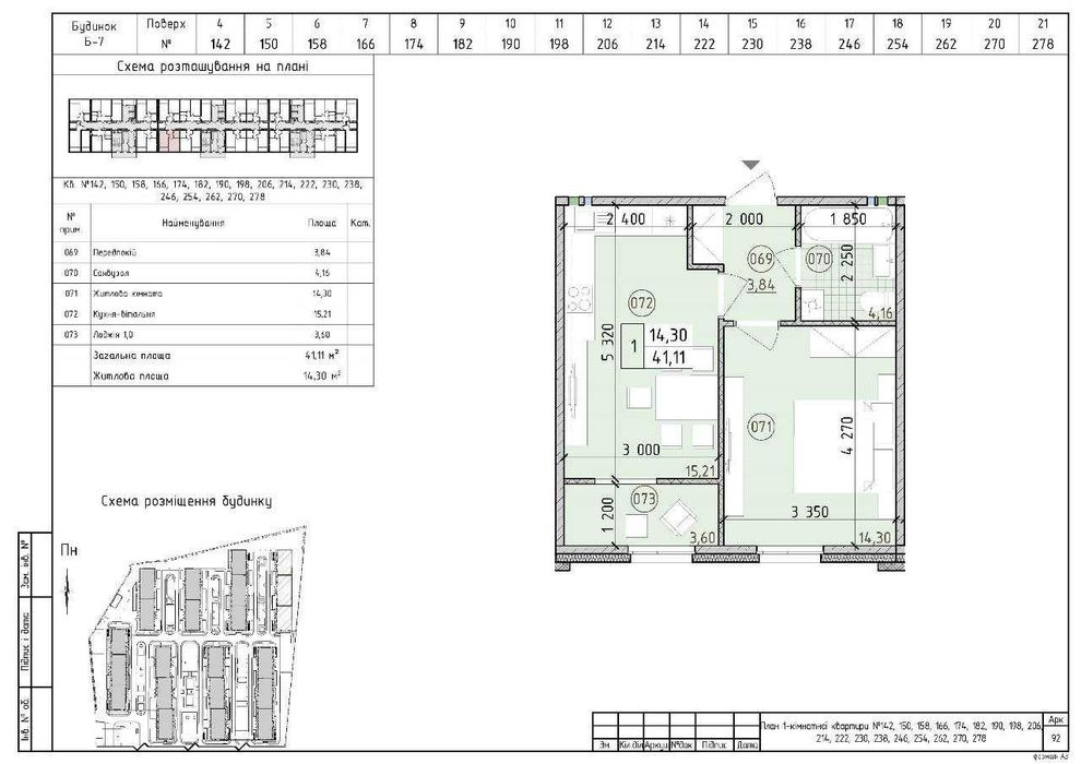 1-комнатная квартира по адресу (площадь 41 м²)Код объекта:464814