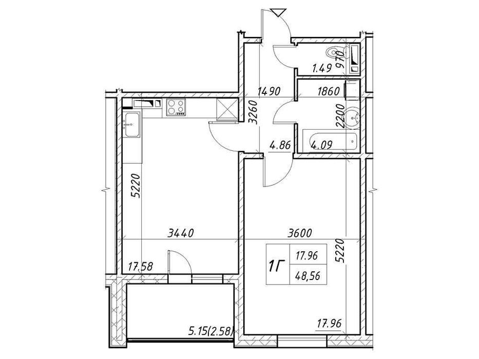 1-комнатная квартира по адресу ул. Коноплянская (площадь 48 м²)Код объекта:469161
