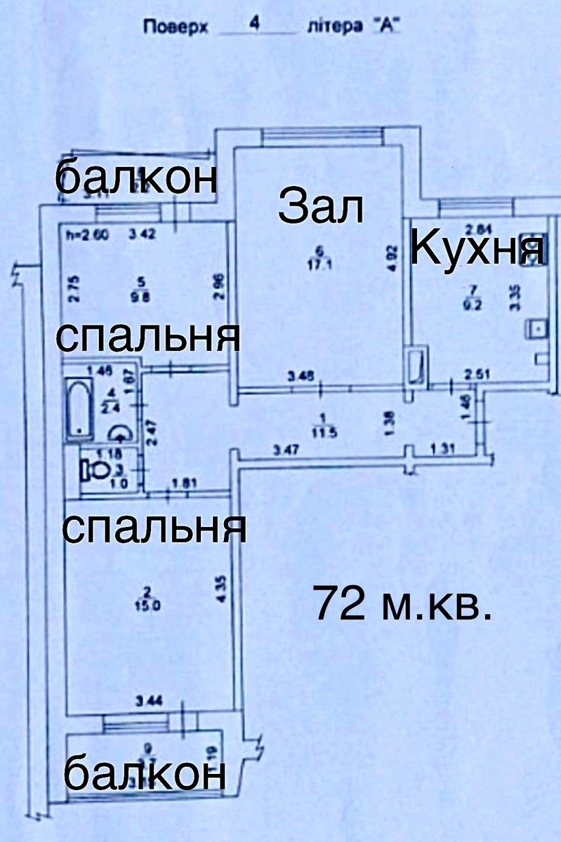 3-комнатная квартира по адресу ул. Радужная (площадь 72 м²) - Atlanta.ua