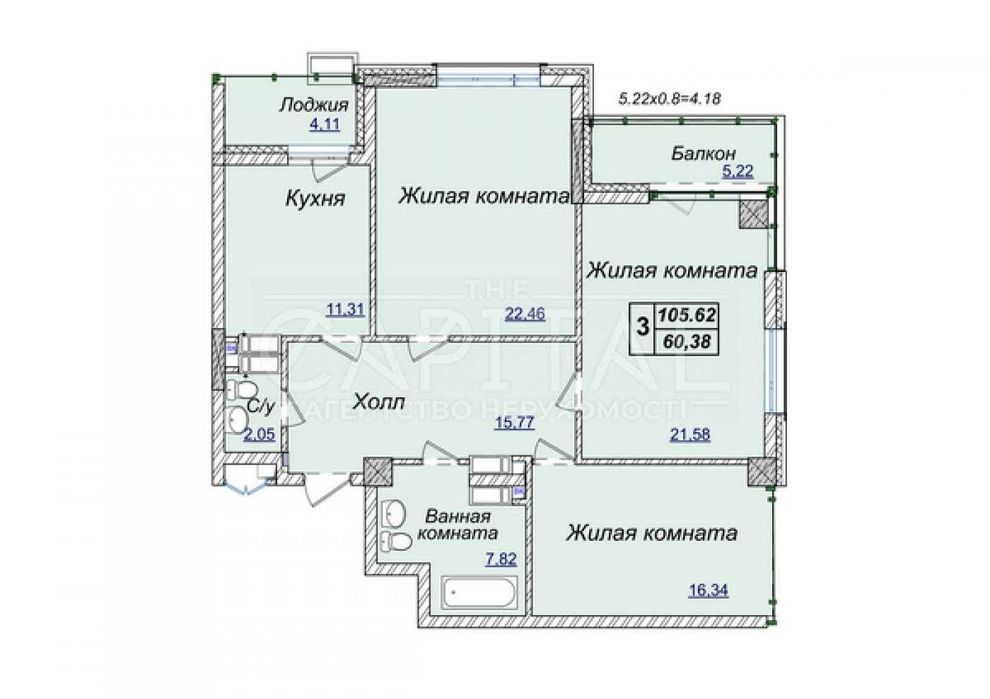 3-комнатная квартира по адресу бульвар Дружбы Народов (площадь 105,6 м²) - Atlanta.ua
