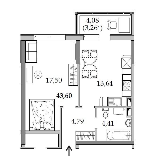 1-комнатная квартира по адресу (площадь 72,8 м²)Код объекта:475702