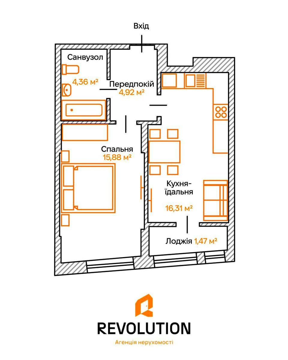 1-кімнатна квартира за адресою вул. Ш. Столичне (площа 43 м²)Код об'єкта:440247