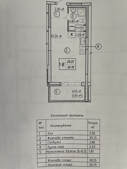 1-кімнатна квартира за адресою (площа 31 м²) - Atlanta.ua