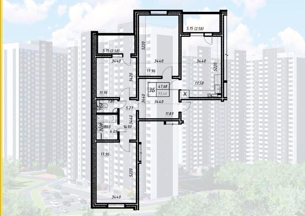 3-кімнатна квартира за адресою вул. Коноплянська (площа 93,3 м²) - Atlanta.ua
