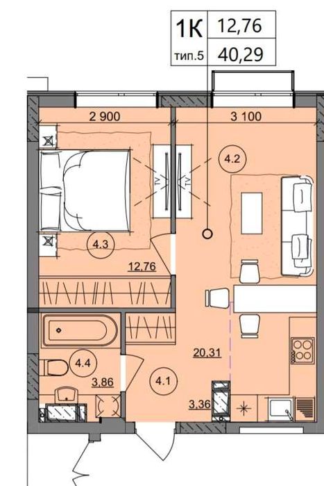 1-кімнатна квартира за адресою вул. Проценка (площа 39 м²) - Atlanta.ua