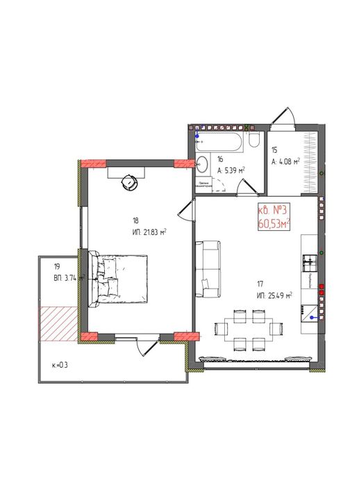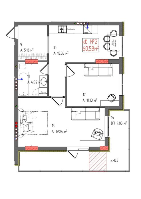 2-кімнатна квартира за адресою Петефі Шандора пл. (площа 56 м²)copyIcon:444604
