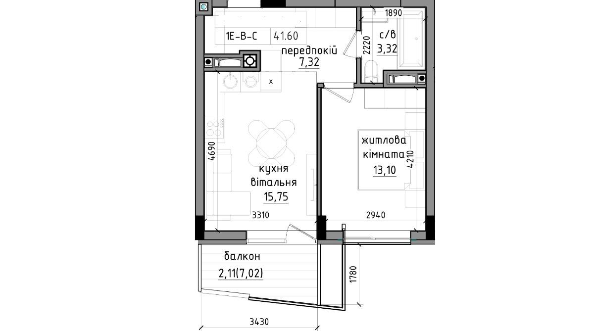 1-комнатная квартира по адресу (площадь 46,5 м²) - Atlanta.ua - фото 2