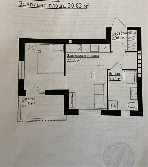 1-комнатная квартира по адресу ул. Сергея Зулинского (площадь 31 м²)Код объекта:453882